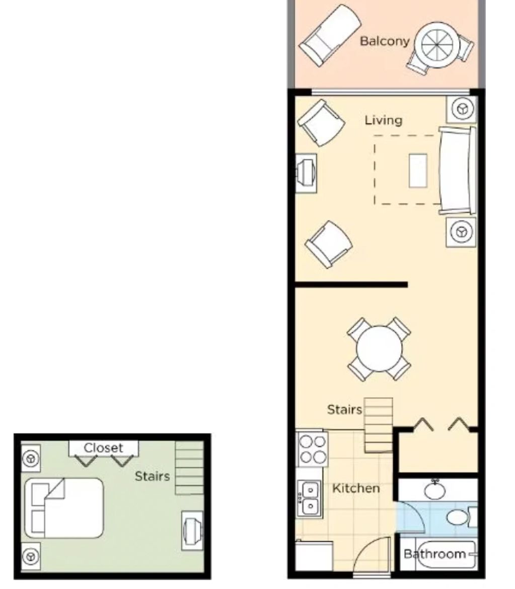 Studio loft - Simalar esthetics to the studio with an upstairs bedroom